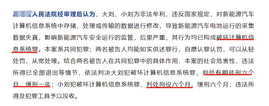 如今竟然一語(yǔ)成讖了!之前幾天,網(wǎng)上到處流傳著一則判罰結(jié)果,一位非品牌官方的汽修廠,通過(guò)自行“解鎖”,為車(chē)主維修了兩塊動(dòng)力電池,結(jié)果被汽車(chē)廠家起訴,起訴事由是汽修廠兩位員工的行為,造成了新能源汽車(chē)電池運(yùn)行的采集數(shù)據(jù)失真,影響新能源汽車(chē)安全運(yùn)行。最終兩位修理人員被判“進(jìn)去”6個(gè)月,并沒(méi)收違法所得5000元。