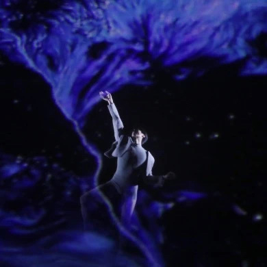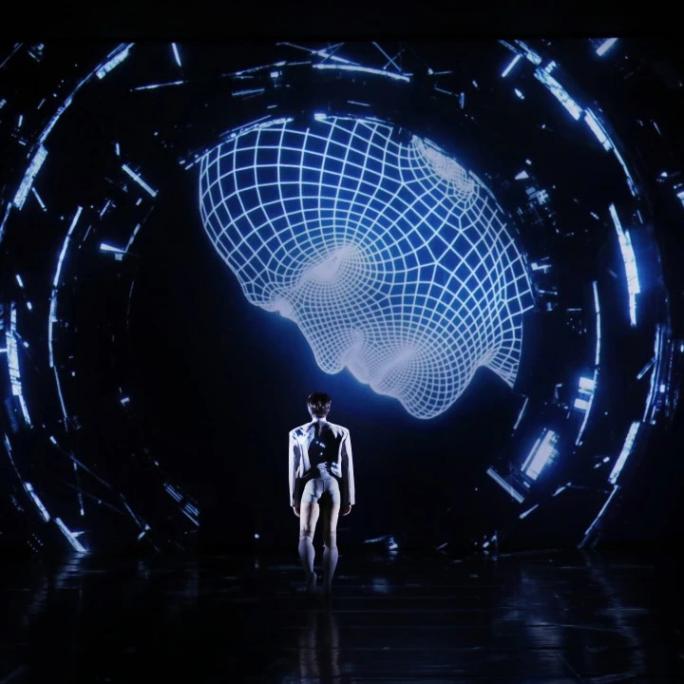 夢中的這團云在他看來就像是宇宙里的某種元素,而現實中,“她”是AI交互的產物。由上海歌舞團聯合上海交通大學倪冰冰教授團隊、新媒體視覺劇場戴煒團隊共同打造的“她”,利用人工智能進行動作提取并生成數字人特效的算法,通過精準的動作捕捉和深度學習技術,實現虛擬與現實之間的實時互動。