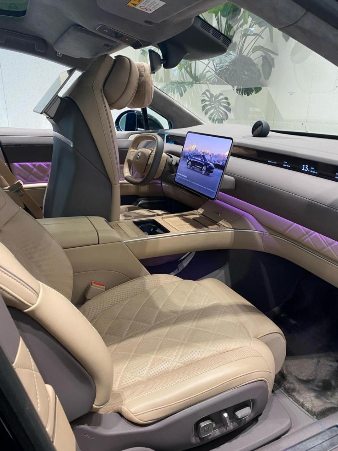 ET9的前后座墊看起來都特別厚,不像一般的純電車考慮到頭部空間把坐墊都減得很薄,因為ET9看起來更像一個跨界車,所以高度達到了1621mm,幾乎是市面上高度最高的轎車,完全沒有頂部空間不足的煩惱。同時因為寬度也是同級別最寬,所以座椅也很寬,側翼幾乎對身體沒有什么包裹感,這時候天行主動懸架就起到了很大的作用,不需要依靠座椅側翼的支撐來保證乘坐的平穩性。