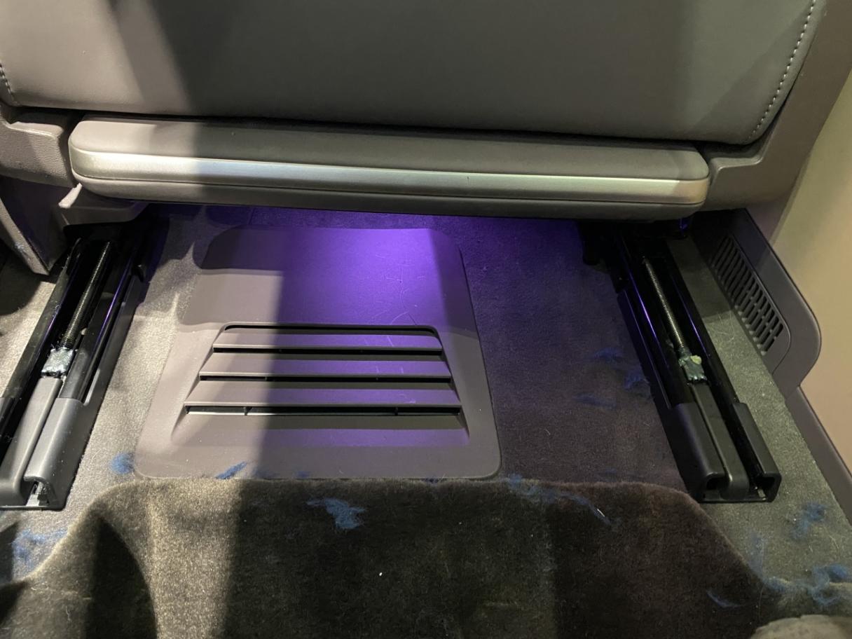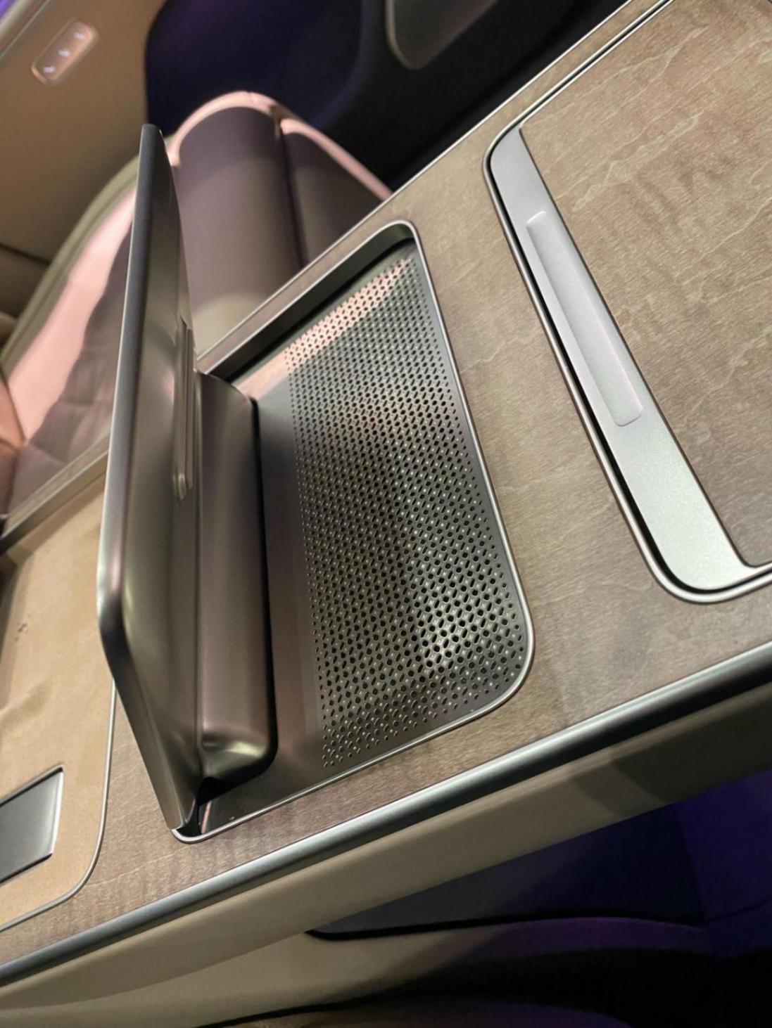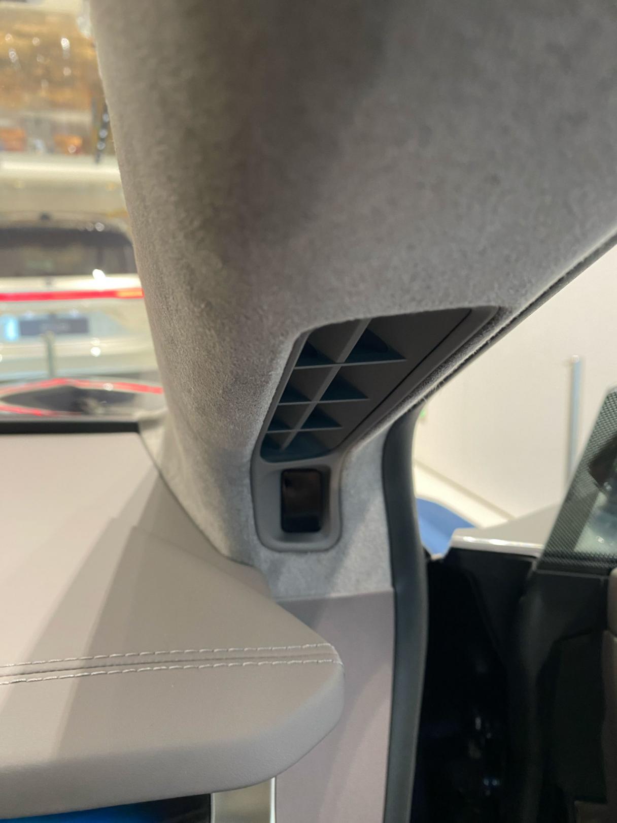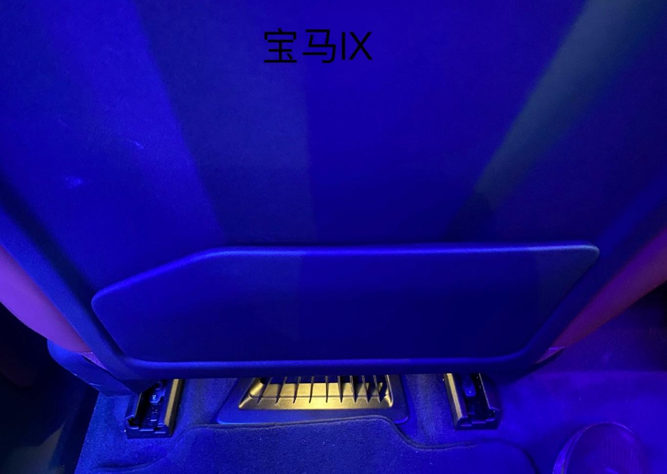 ET9的前排座椅在正常坐姿下是看不見下面的出風口的,即使在座椅前移后,出風的網格角度和大小也設置得比較合理,看起來更美觀。對比一下寶馬的豪華產品i7和IX的設計,能透過網格看見風道內部,同時還很容易掉進異物。
