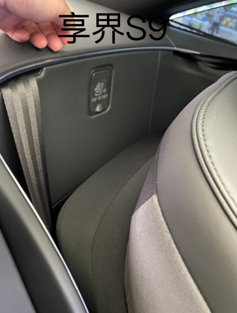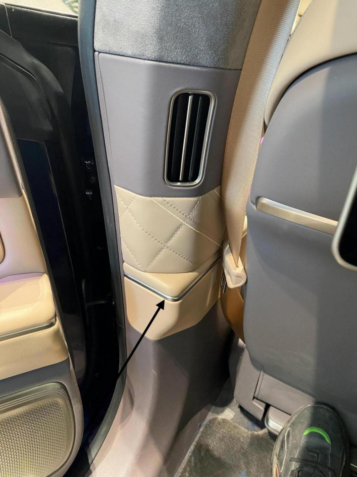二排靠背因為可以調節角度,所以靠背后與車身之間留有很大一個空隙,但是ET9看起來沒有在這里設置一個可以遮擋物品掉下去的結構。而享界S9在這里則有一個可以壓縮的遮物簾。