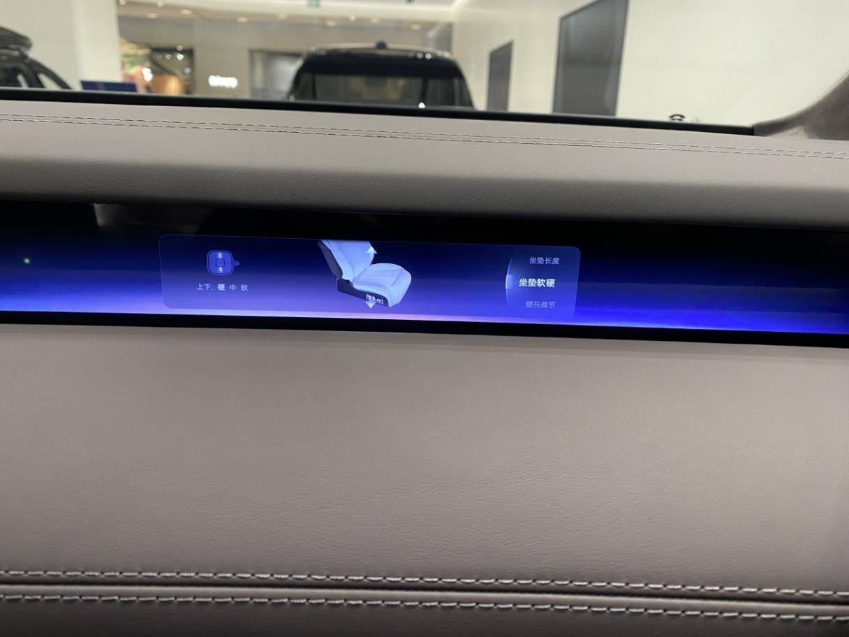 在副駕這一側,因為座椅增加了坐墊軟硬調節,所以把原來腰托調節的按鈕增加了一個小耳朵,變成了一個旋鈕,把軟硬、腿托長度、腰托的方向調節集成到了一起,需要先旋轉按鈕進行功能選擇,借助顯示屏來判斷究竟到了哪個功能,然后再摁方向鍵調節。還是因為這畫面有點小,不太方便辨認。但是與領克系列的那種調節只能看中控大屏相比,ET9把這個畫面移到了你的正前方,可以說各有千秋。