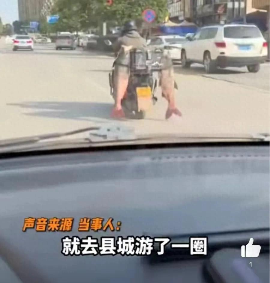 2月12日,四川廣安某男子花兩天釣起兩條大魚,大的有43斤,小的有38斤,掛在摩托車上炫耀,去縣城逛了一圈,吸引全城目光,上熱搜.