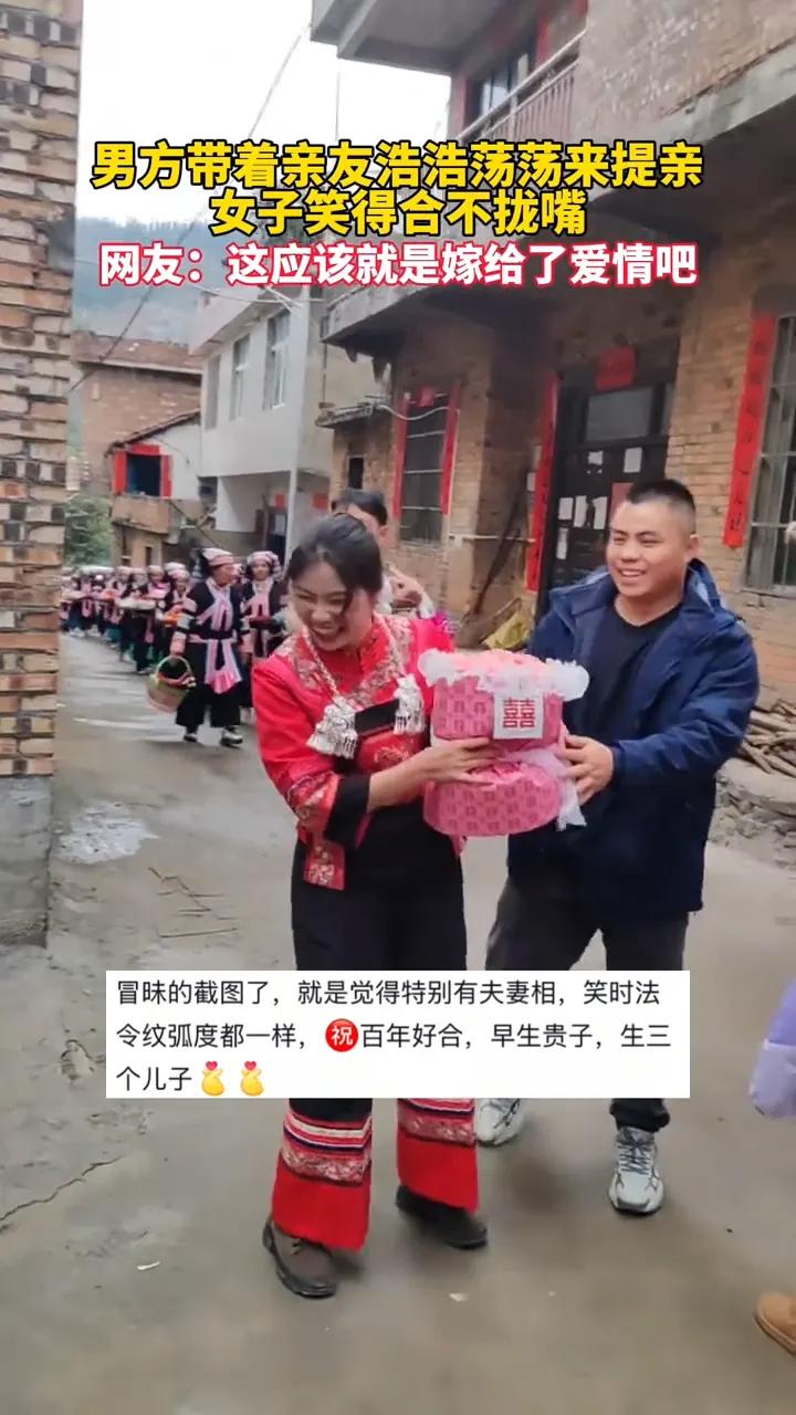 視頻中,男方率一眾親友,浩浩蕩蕩前往女方家提親。那場(chǎng)面,熱鬧得如同盛大節(jié)日,人群簇?fù)恚瑲g聲笑語(yǔ)不斷。男方臉上,幸福與緊張交織,不難看出,他對(duì)這場(chǎng)親事極為重視,每一個(gè)細(xì)節(jié)都傾注了心血。