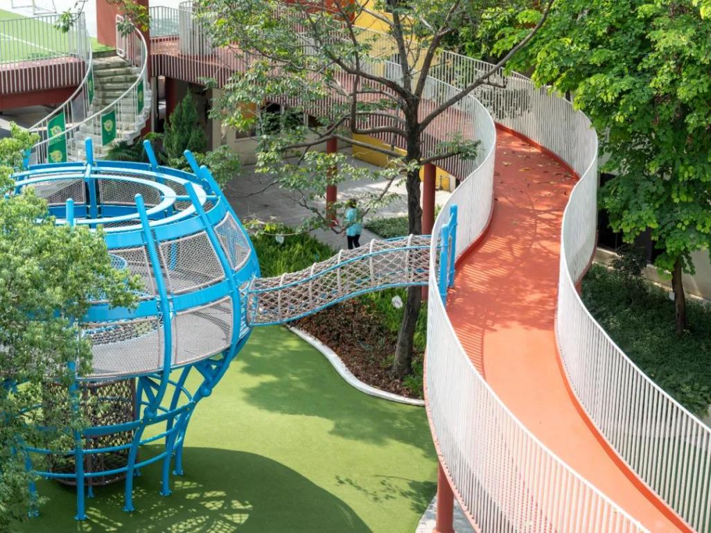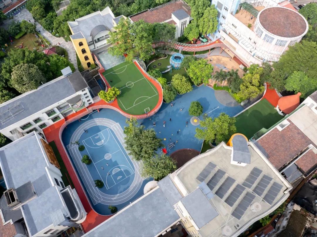 中國城市化在近20年加速發展,城市面貌日新月異。城市中建筑的更新和城市化更是緊密結合,城市更新下的老舊幼兒園空間也亟需改變。2022年,XAA建筑事務所作為主要設計團隊,對廣州市第一幼兒園進行了建筑空間及外立面的更新改造。建筑師通過新舊共生,自然質樸的建筑語言,讓市一幼重新煥發新生,打造珍藏童年純真回憶的時光容器,孩子從小家向大世界探索的精神樂園。