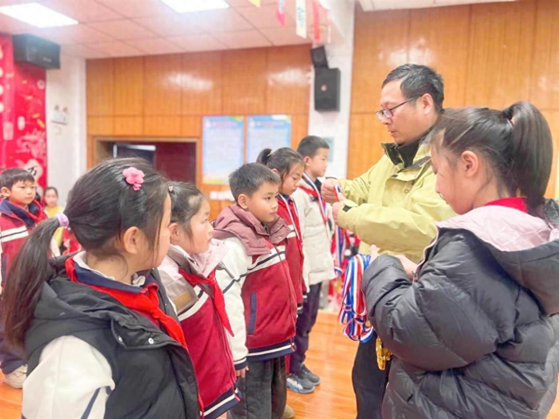 除了表彰環(huán)節(jié),現(xiàn)場還穿插了精彩的節(jié)目表演。同學(xué)們用靈動的舞姿、悅耳的歌聲和充滿創(chuàng)意的表演,展現(xiàn)了廟山小學(xué)學(xué)生積極向上的精神風(fēng)貌,為表彰大會增添了歡樂與活力。獲獎學(xué)生徐可悅難掩激動之情,她說:“拿到獎狀和青菜,我特別開心!這是對我上學(xué)期努力的認(rèn)可。以后我會更加努力學(xué)習(xí),多參加勞動。”另一位同學(xué)晏莀琦也表示:“這次表彰給了我很大的鼓舞,我會保持好習(xí)慣,積極鍛煉。”