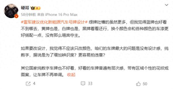 雷軍建議優化新能源汽車號牌設計,隨后,相關話題登上熱搜,引發業內人士討論與網友熱議。
