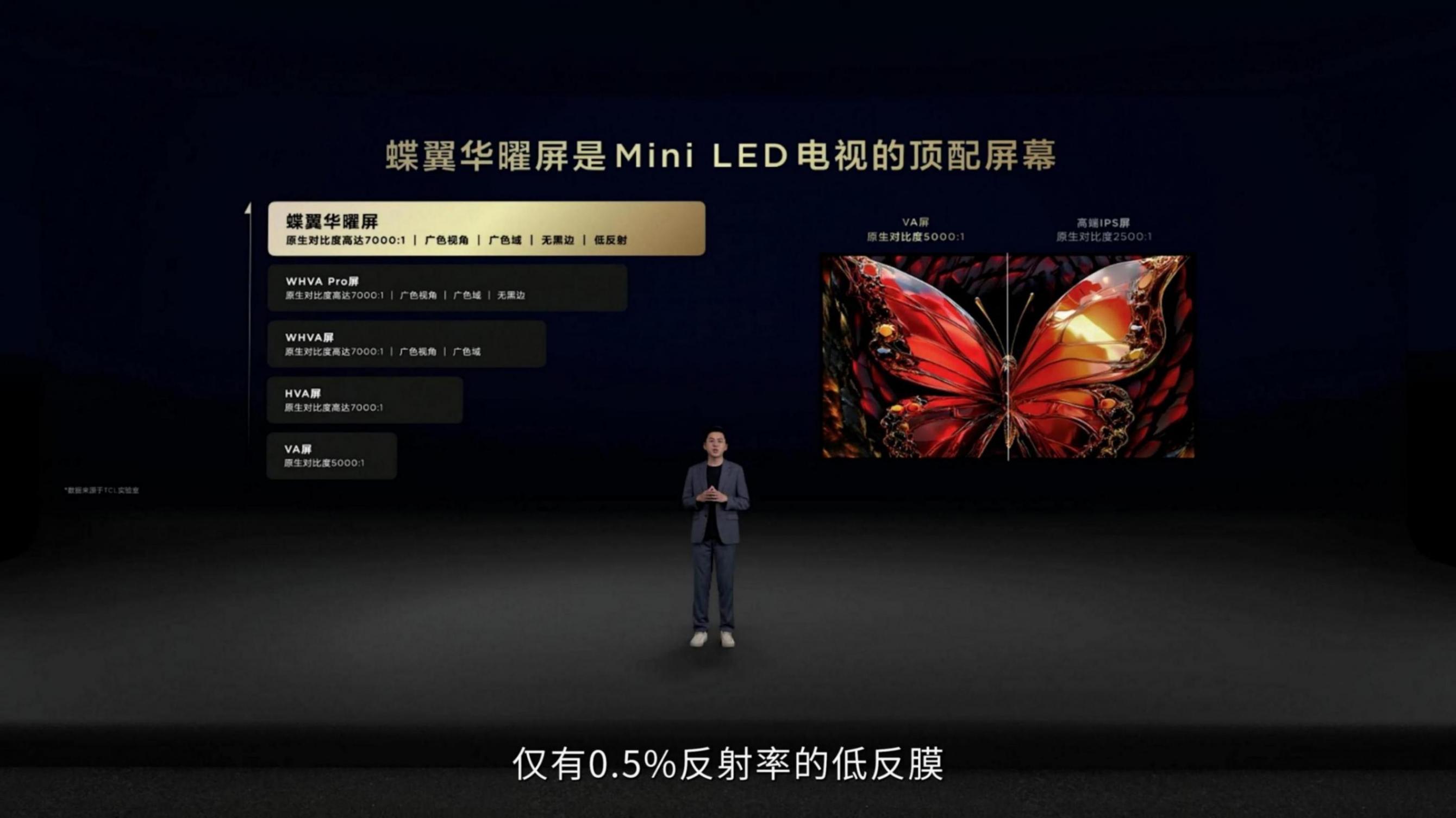 一臺好電視,屏幕才是硬實力。Q10L系列搭載的蝶翼華曜屏,是Mini LED電視里當之無愧的“天花板”。這是華星光電的頂配屏幕,行業首發,技術迭代到極致。其液晶分子呈蝶翼狀排列,遮光能力更強,響應速度更快,畫面控制更精準。再加上納米低反膜的加持——白天再亮、夜晚再暗,畫面都純凈通透,沒有反光,沒有白霧。蝶翼華曜屏還解決了長期以來的視角問題——色彩視角提升40%,就算側著身子躺在沙發上,看到的色彩依舊純正、飽滿。真正做到了“怎么看都好看”。
