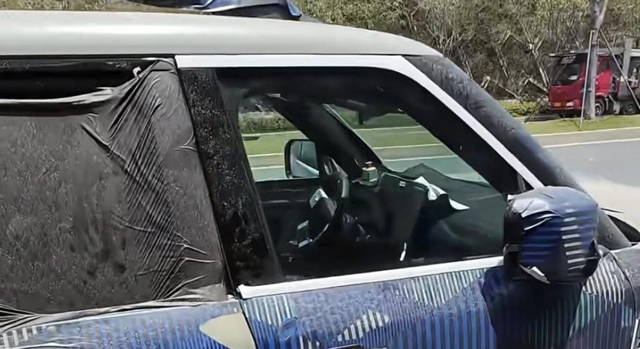 從外觀諜照來看,方程豹鈦7延續(xù)了品牌硬派的設(shè)計風(fēng)格,采用當(dāng)下流行的“方盒子”造型 ,線條硬朗筆直,展現(xiàn)出十足的力量感。其前臉雖被偽裝覆蓋,但仍能推測前大燈組或為貫穿式設(shè)計,下方粗壯厚實的前保險杠,凸顯出車輛強大的氣場。車身側(cè)面,線條幾乎橫平豎直,上腰線從前大燈一直延伸至尾燈處,水平筆直,給人一種穩(wěn)重的感覺。側(cè)窗玻璃方正,輪眉寬厚且凸出車身,線條明晰,搭配寬大的外后視鏡外殼和機械式門把手,不僅實用,還增添了幾分硬派越野的氣息。車頂配備的行李架,更是為車輛的戶外出行屬性加分不少。來到車尾,豎向布局的尾燈組十分醒目,獨特的方形“小書包”式儲物箱,不僅增加了車尾的層次感,也彰顯了車輛的個性與實用性。