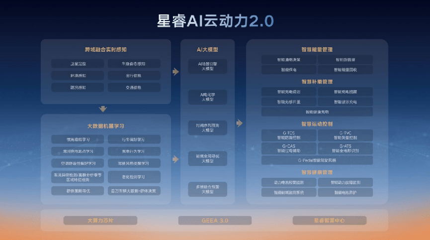 星睿AI云動力2.0的技術(shù)底座,是覆蓋全國道路實(shí)測數(shù)據(jù)、四季氣候特征及超百萬用戶駕駛習(xí)慣的“全場景決策圖譜”。系統(tǒng)通過AI語義大模型與多模態(tài)感知技術(shù),實(shí)現(xiàn)毫秒級需求預(yù)判,將傳統(tǒng)混動“固定程序響應(yīng)”升級為“動態(tài)場景適配”。實(shí)際測試顯示,該系統(tǒng)可在高速巡航時自動切換最優(yōu)能量回收模式,山區(qū)行駛前智能保電確保爬坡動力儲備,甚至能在冰雪路面2毫秒內(nèi)完成扭矩分配調(diào)整,安全性較傳統(tǒng)四驅(qū)提升40%。