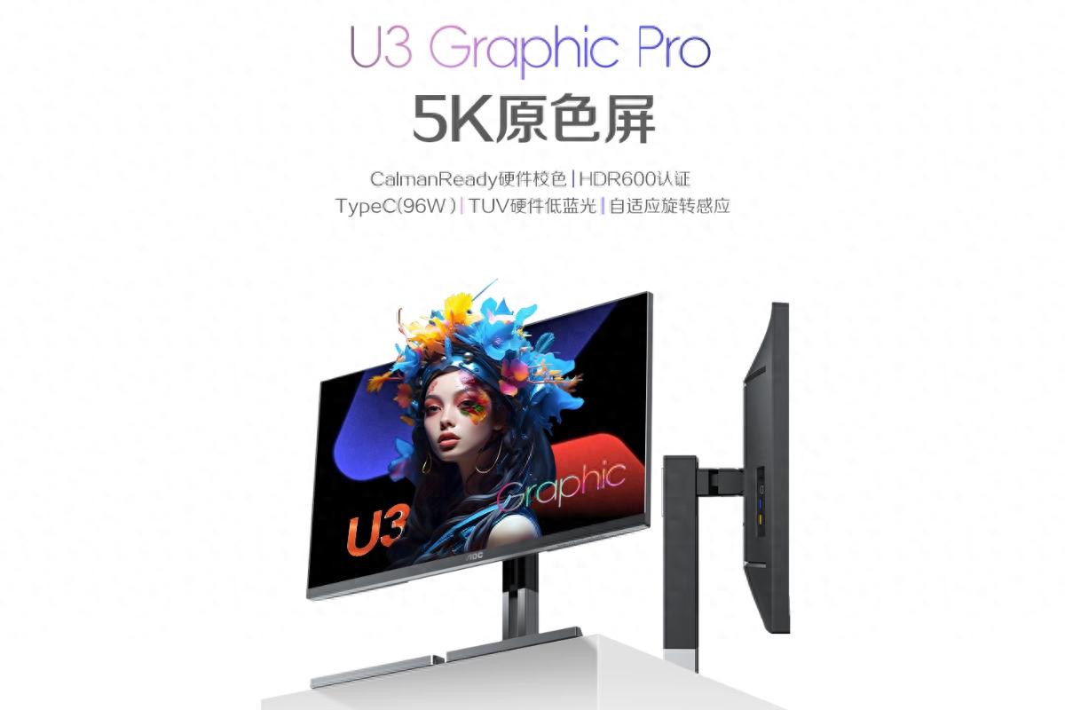 AOC推出了K27U3D顯示器,該產(chǎn)品隸屬于AOC U3 Graphic Pro系列,主要面向?qū)I(yè)級市場。AOC K27U3D顯示器主打5K@70Hz,配備27英寸IPS面板,支持CalmanReady硬件校色,支持HDR 600,目前已上架電商平臺,售價(jià)6999元。