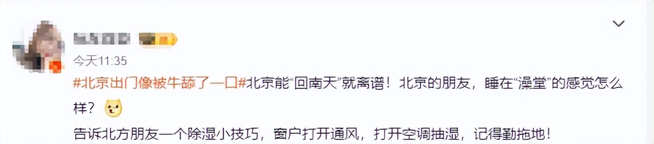南方網友也紛紛支招北方網友如何應對濕熱天氣,“窗戶打開通風,打開空調抽濕,記得勤拖地”。