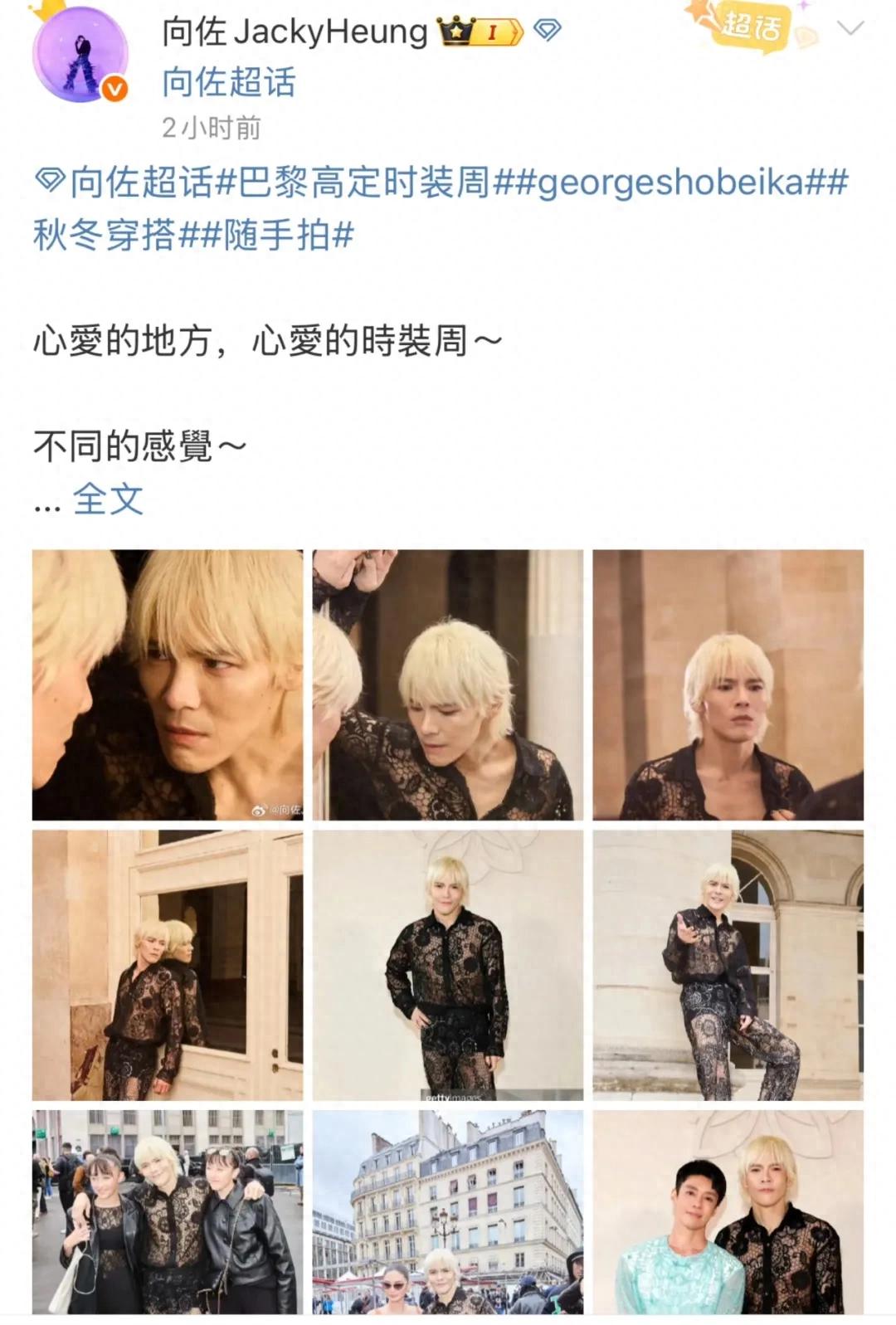 巴黎高定時裝周上,他以金發+透視裝炸場,大膽前衛到極致——透視蕾絲勾勒硬朗線條,金發造型打破常規,時尚感直接拉滿!連網友都狂呼:“感覺只有向佐才能hold住這種超難駕馭的造型吧!”