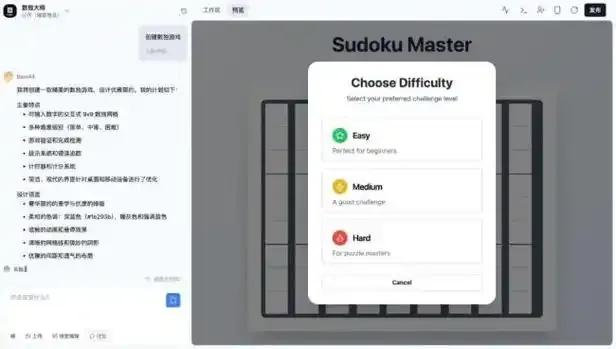 當(dāng)競爭對手還在采用“前端生成+第三方后端集成”模式時(shí),Base44的一站式閉環(huán)設(shè)計(jì)讓非技術(shù)人員兩分鐘創(chuàng)建數(shù)獨(dú)游戲成為可能。