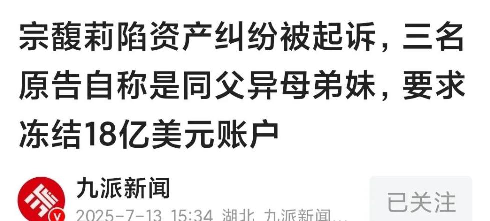 聯(lián)手在香港的法院告宗馥莉,和“嫡姐”爭(zhēng)奪遺產(chǎn)、股份,
