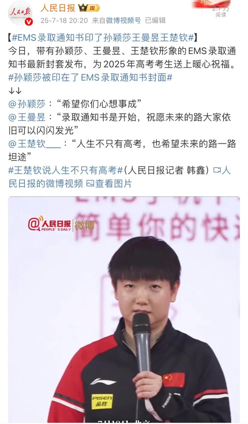 人民日報報道今天孫穎莎王楚欽參加的活動,