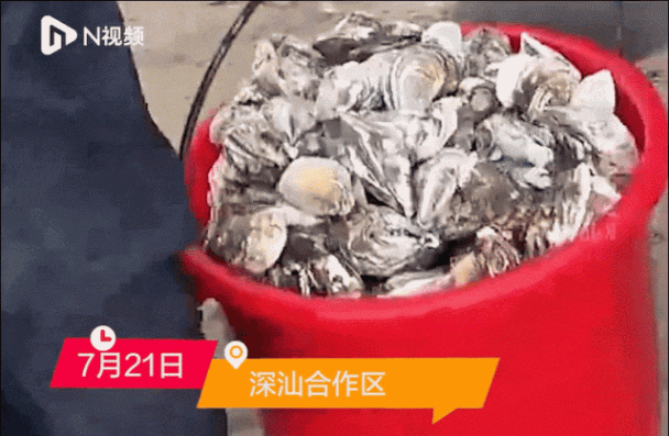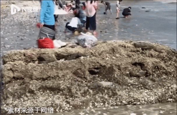7月21日,深汕特別合作區,臺風“韋帕”過境后,鲘門海灘遍地海鮮,居民冒雨趕海撿到“爆桶”。