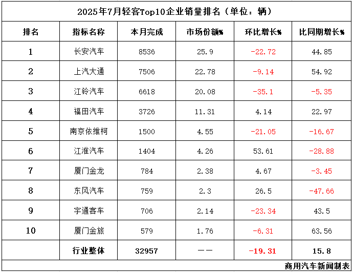 中汽協(xié)數(shù)據(jù)顯示,7月,輕客市場(chǎng)共實(shí)現(xiàn)銷售32957輛,環(huán)比下降19.31%,同比增長15.8%,尤其在上月“同環(huán)比雙增、銷量上4萬”的襯托下,顯得有些慘淡。