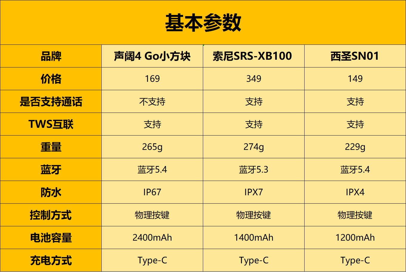 大家在簡單的了解了音箱背景之后,我還給大家總結了三款音箱的基本參數,方便大家能夠更加深層次的了解三款音箱參數: