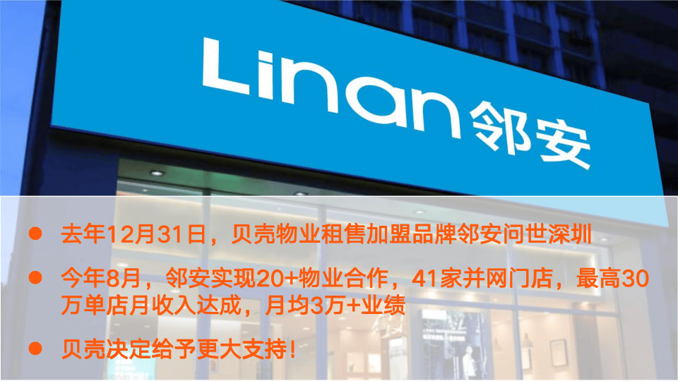 2024年12月,貝殼授權(quán)公司成立了第一個(gè)專注于物業(yè)租售賦能的合作品牌:鄰安。在不足一年的時(shí)間里,實(shí)現(xiàn)了與20余家物業(yè)公司合作、41家門店成功并網(wǎng),部分門店單月營收最高突破30萬元。2025年8月,鄰安成為貝殼推出的第一個(gè)專注于物業(yè)租售賦能的自有品牌“楓鄰”的代理品牌主,與貝殼一同開啟社區(qū)掘金的歷程。此次合作,標(biāo)志著貝殼將投入更多資源,以“楓守四季·鄰護(hù)朝夕”為理念,全面深化與物業(yè)企業(yè)在社區(qū)租售領(lǐng)域的合作。