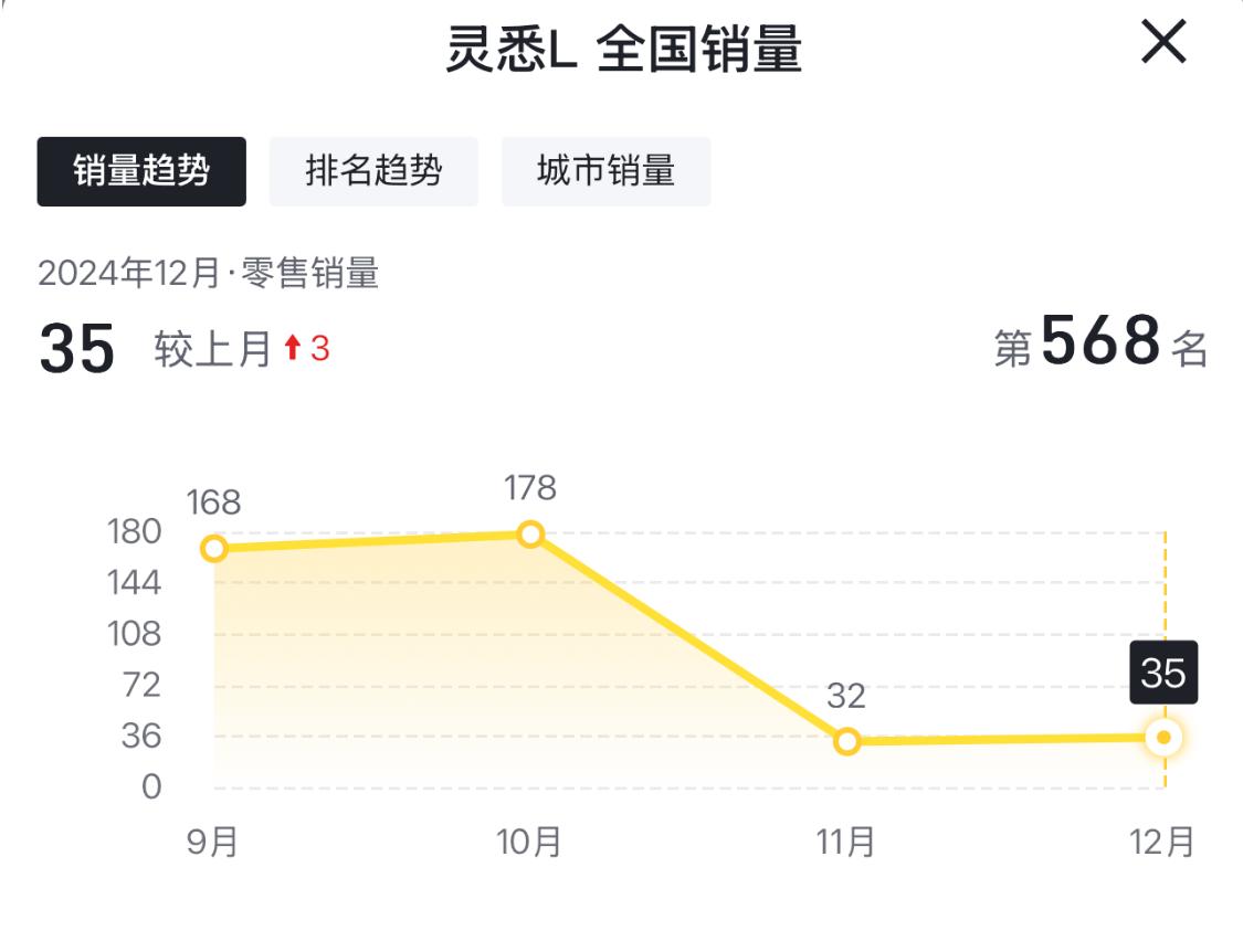 但是,讓人納悶的是,從2024年9月份上市之后,截止到2024年12月份,靈悉L在國內市場的銷量表現,顯然并沒有很出彩。