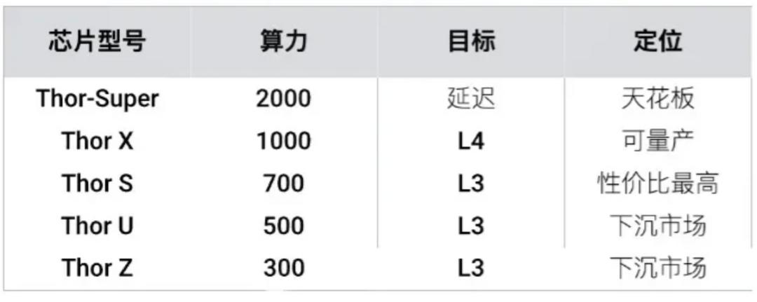 性能最強的Thor-Super算力可達2000TOPS,最高可支持L4級智駕的Thor-X算力達1000TOPS,Thor-S算力達700TOPS。