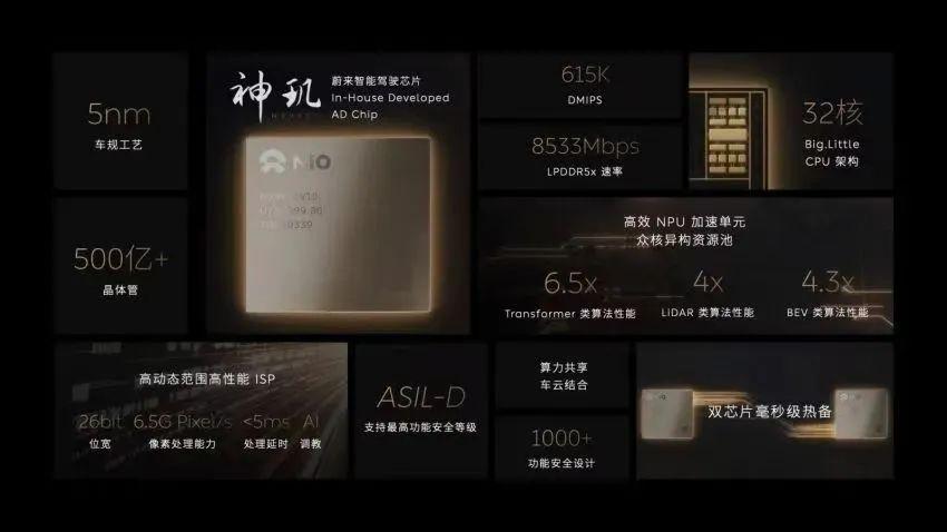另一方面,就是出于成本考慮。蔚來李斌曾表示,因為采購了大量英偉達芯片,耗費了不少資金。一輛ES6就要4顆Orin-X,確實是同級之最。所以,蔚來搞出了1顆頂4顆的神璣NX9031。