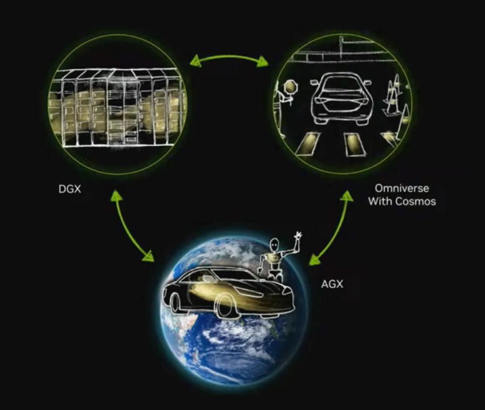Cosmos還能搭配英偉達Omniverse平臺使用,后者可提供現實的數據孿生或AI生成高保真的3D虛擬場景,組合起來將能提供海量更真實的仿真訓練數據,這將大幅降低智駕模型訓練成本、加速技術迭代,有效提升自動駕駛算法的可靠性。